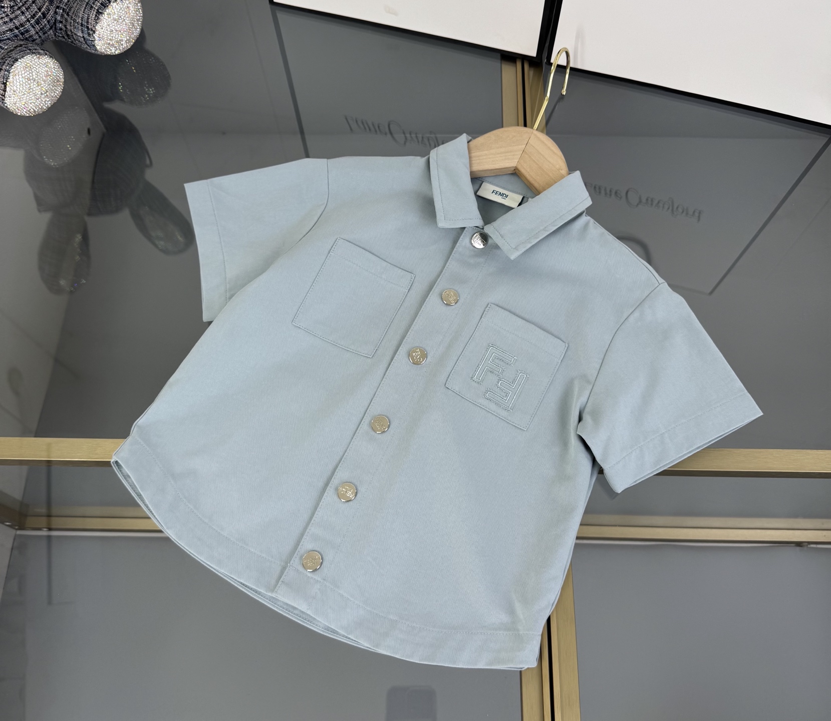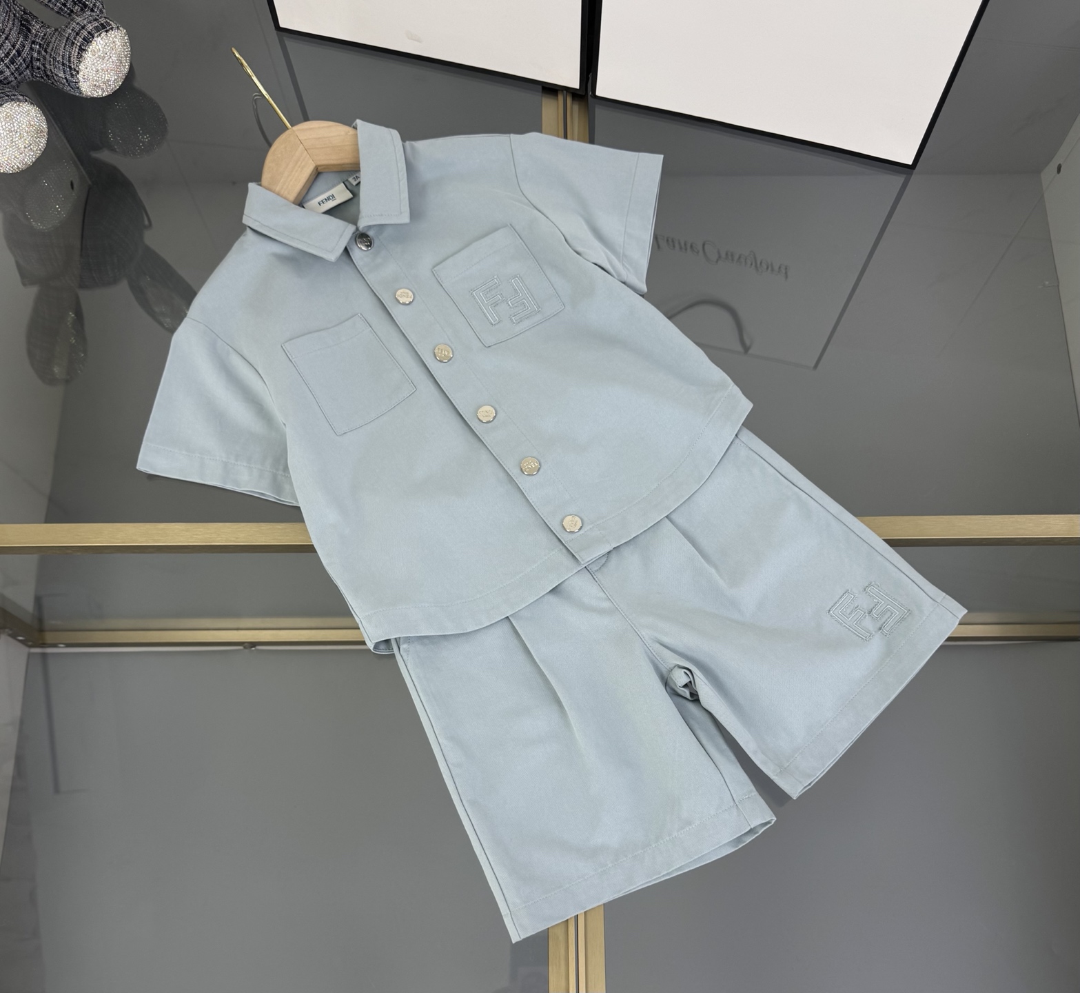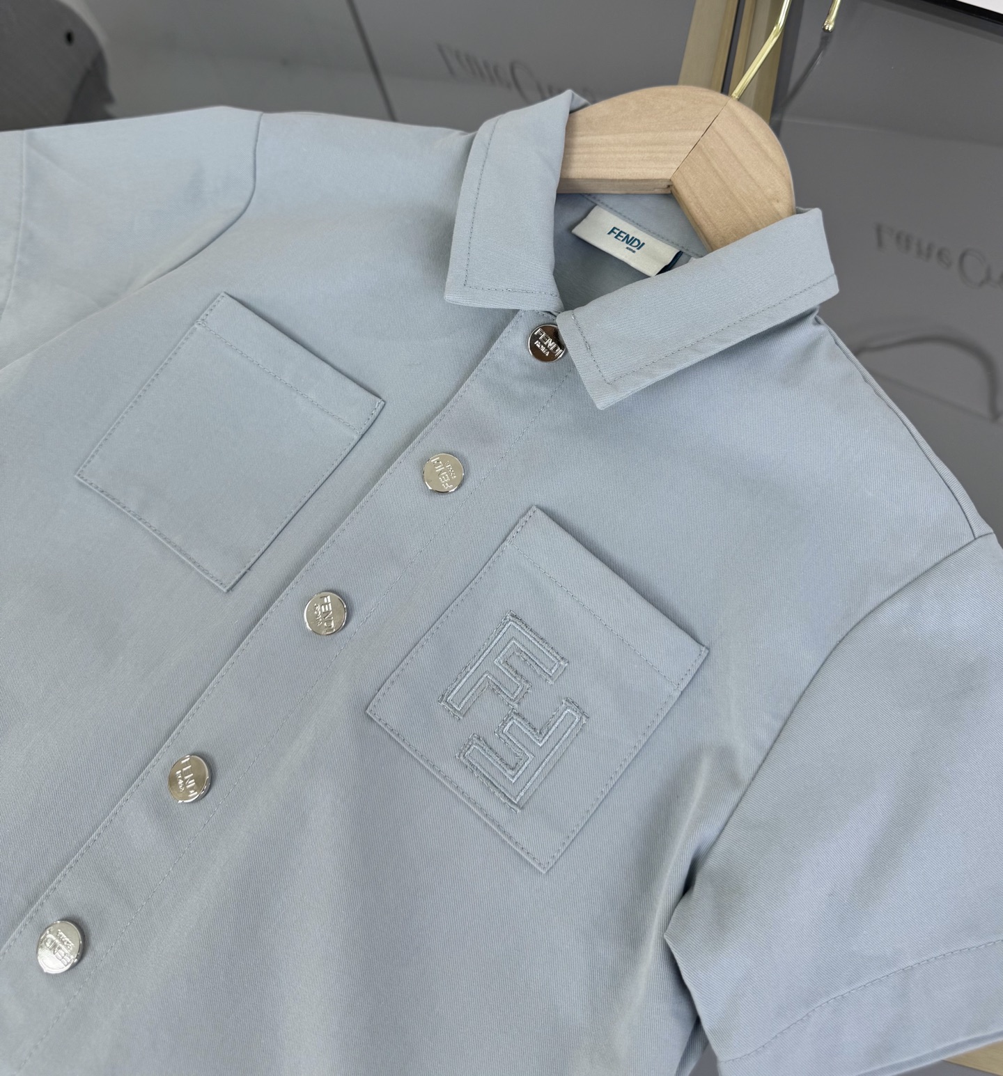 Details: Fendi High - end Kids Set in Custom FF Jacquard Woven Cotton with Logo Embroidery
