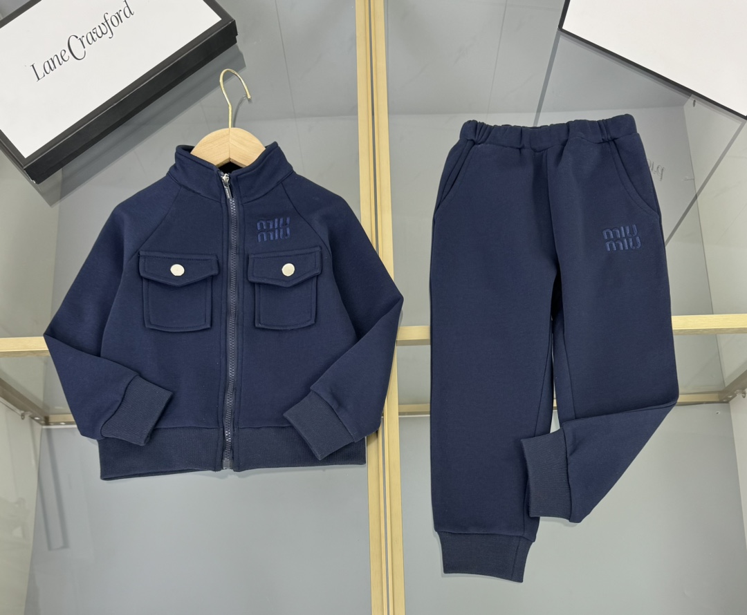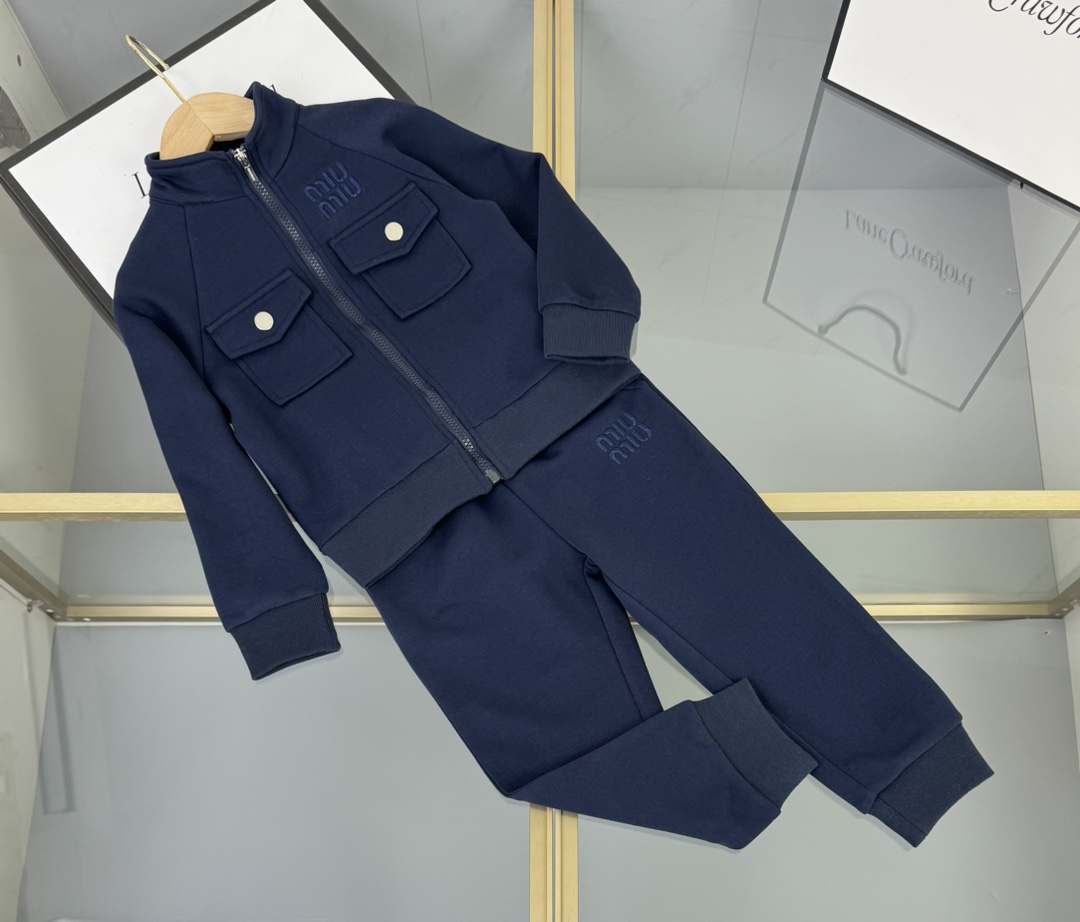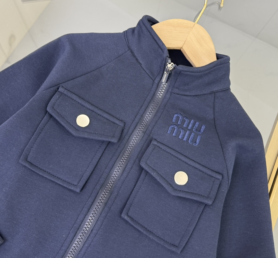 Details: MiuMiu High - end Kids Suit, Imported Modal Cotton, Custom Embroidery, Workwear Style