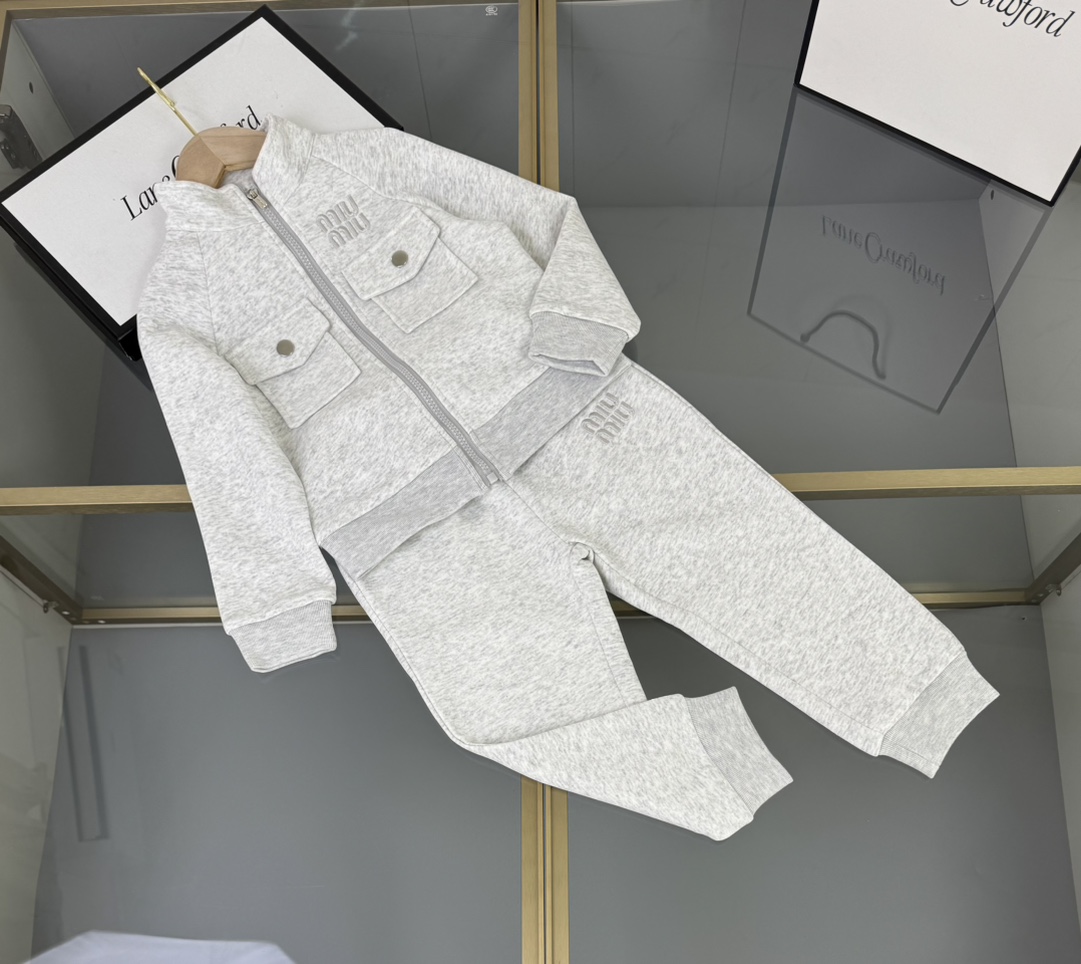 Details: MiuMiu High - end Kids Suit, Imported Modal Cotton, Custom Embroidery, Workwear Style
