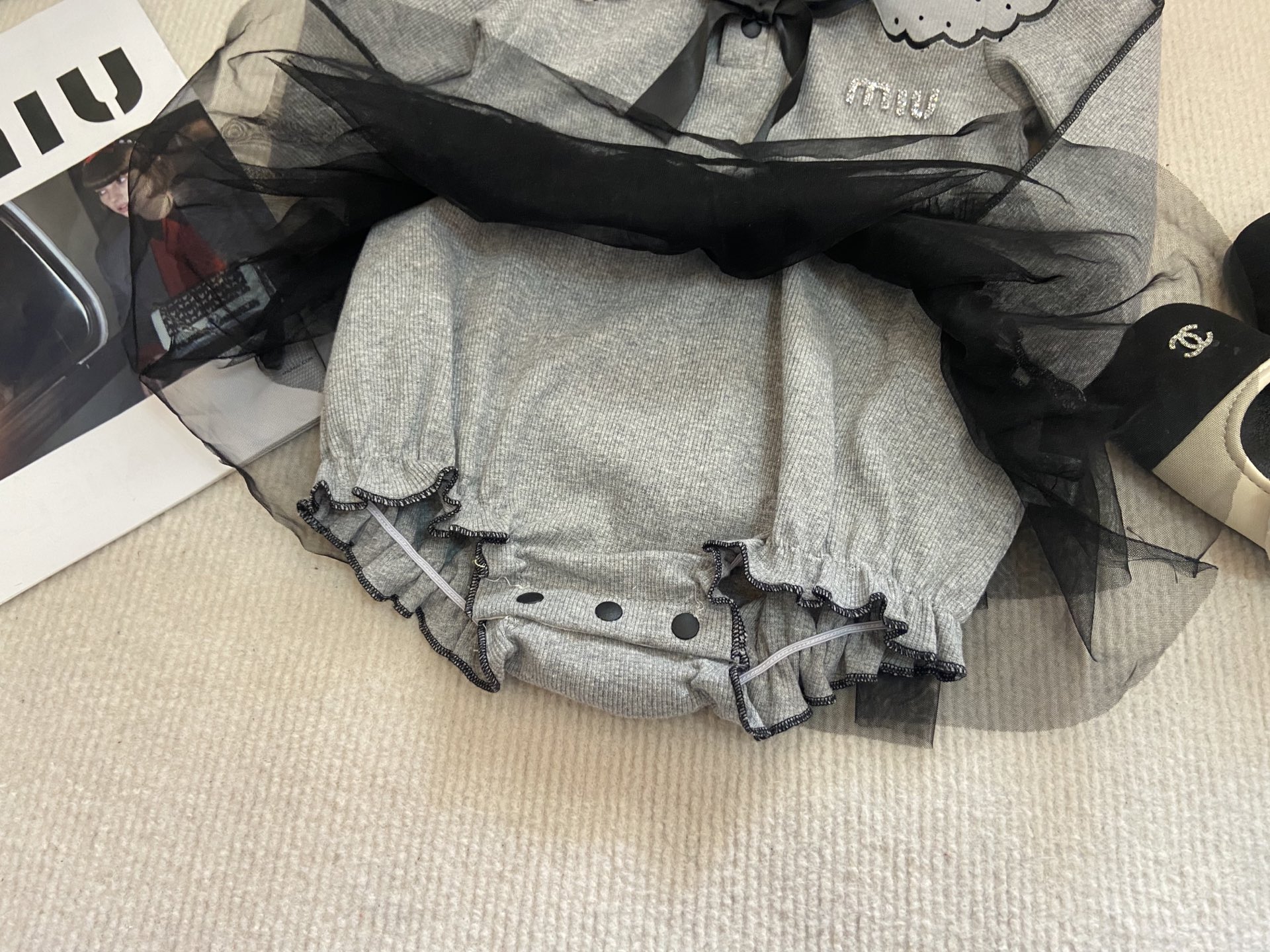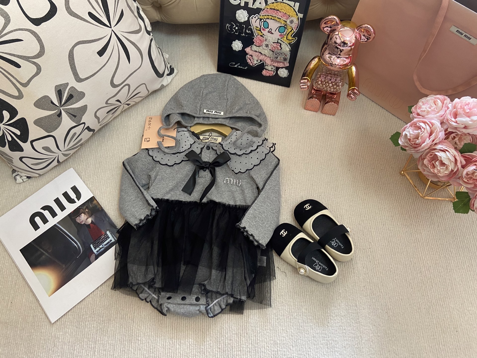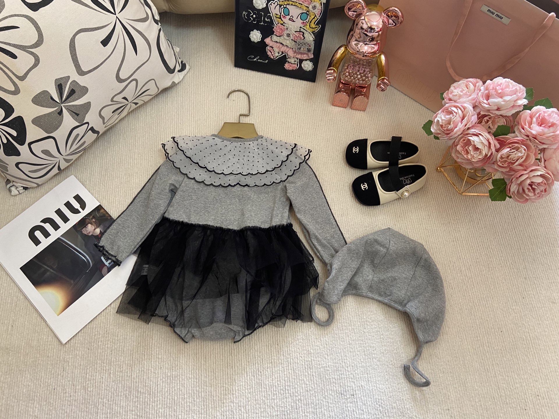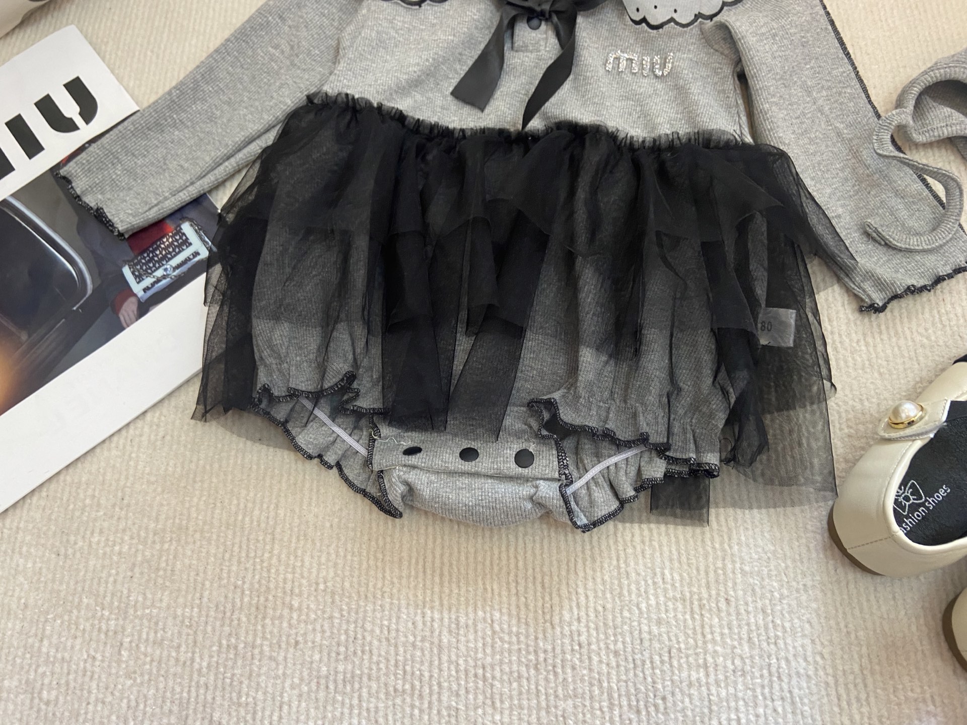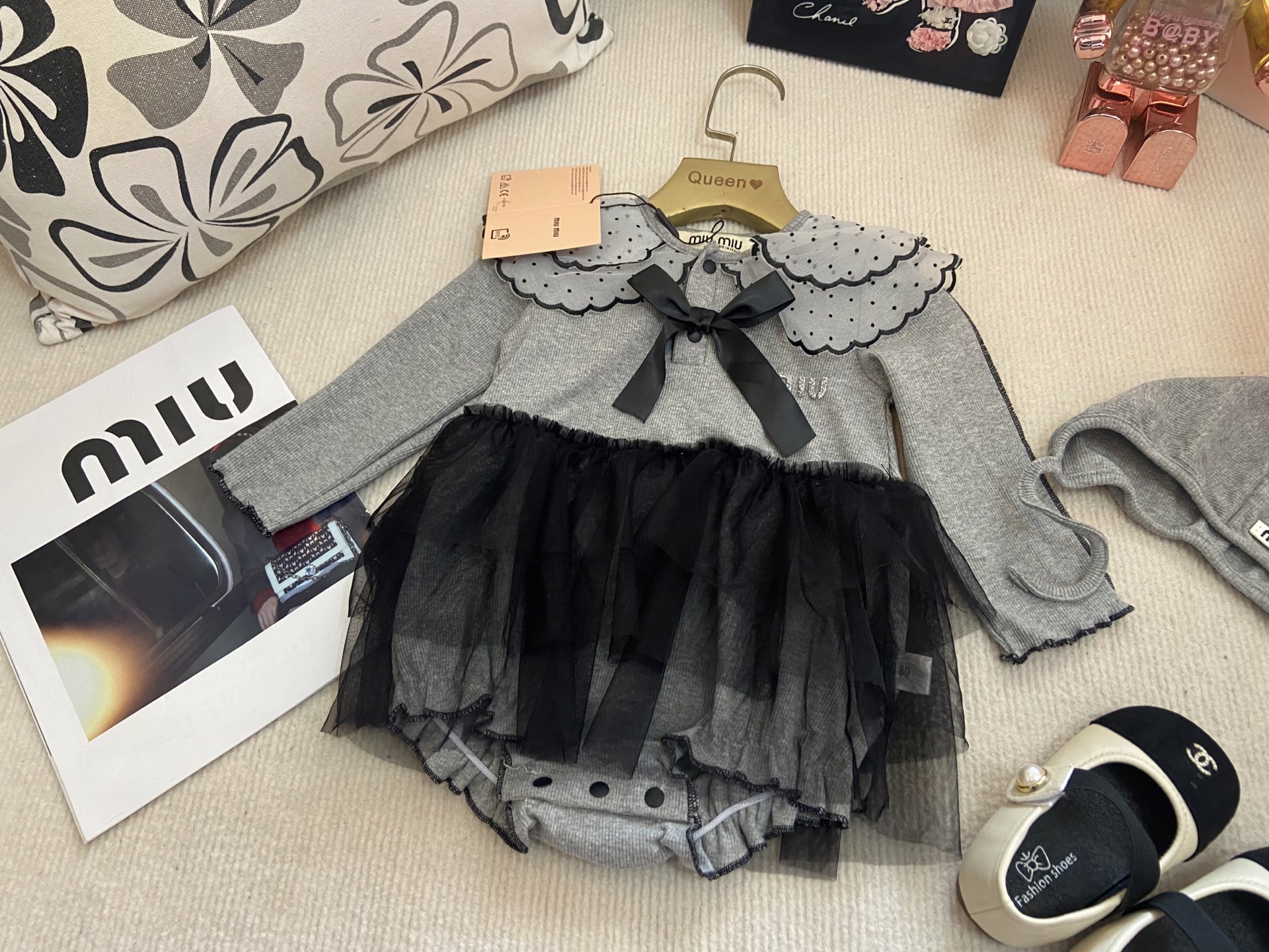 Details: Miumiu Girls Romper Set with Long - sleeve Bodysuit and Hat, Pure Cotton