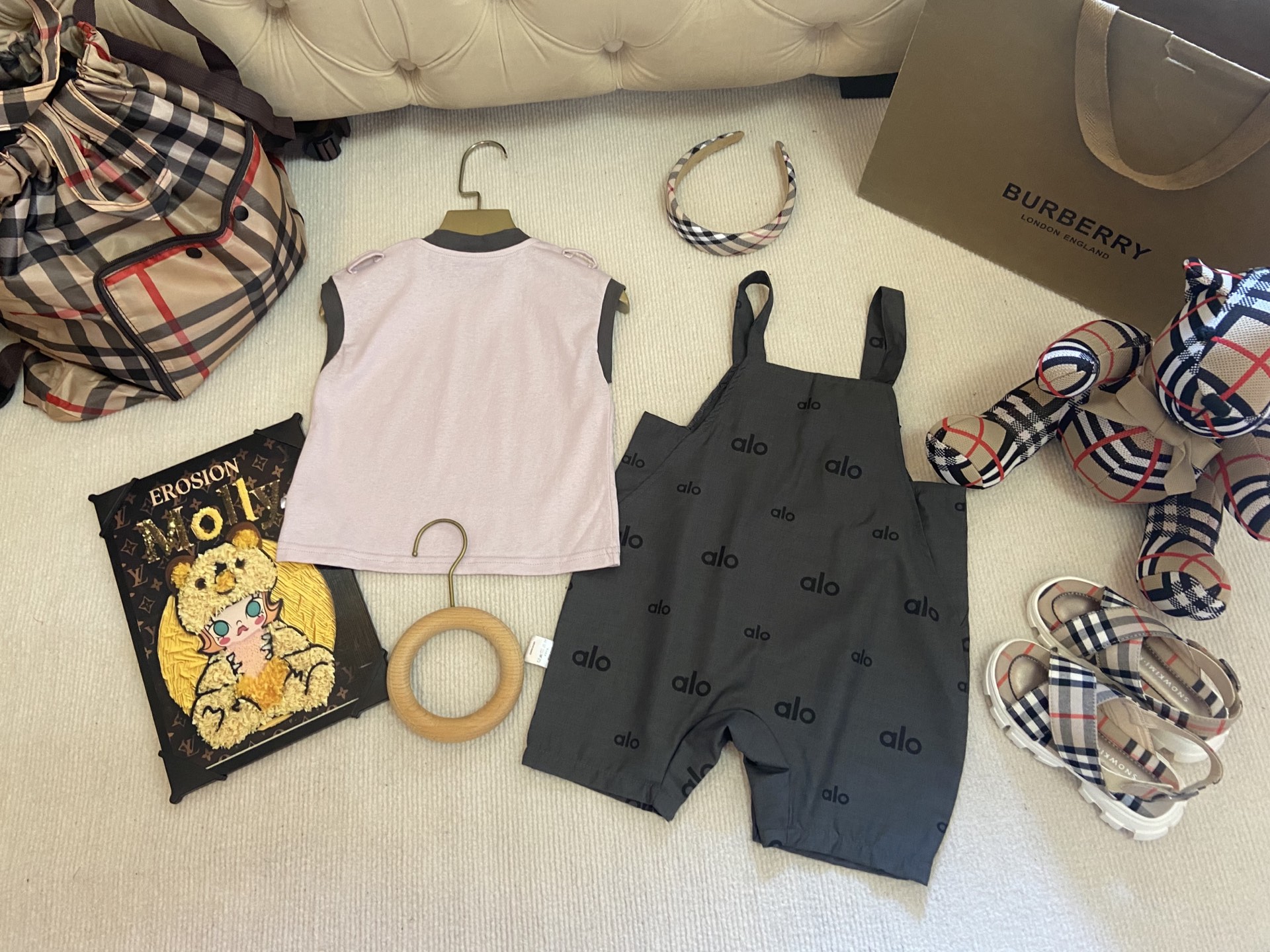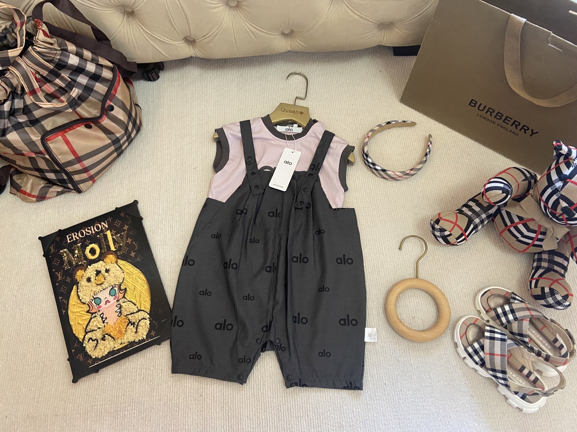 Details: alo High - end Girls Cotton Romper Set with Suspender Pants, Skin - friendly