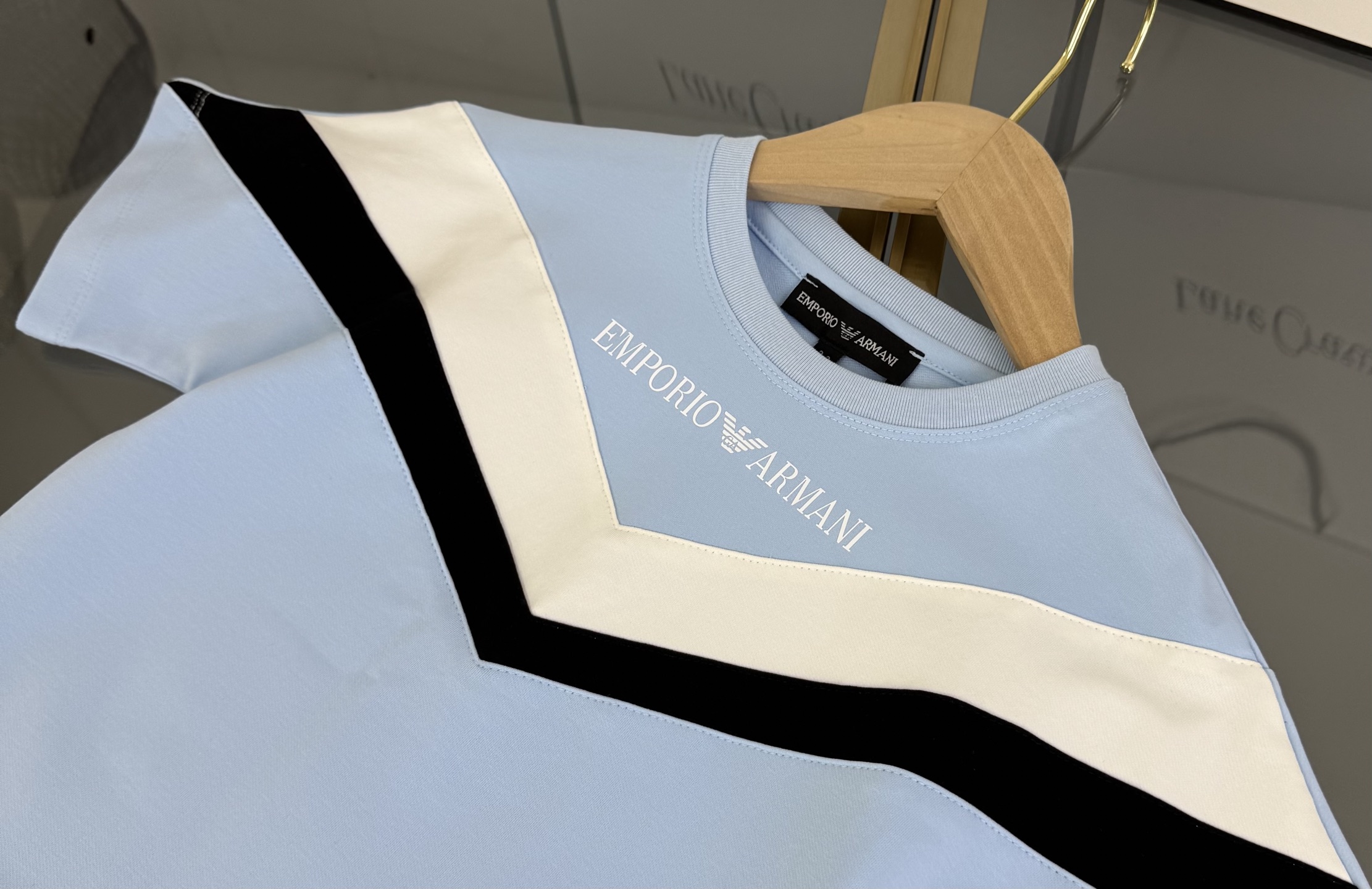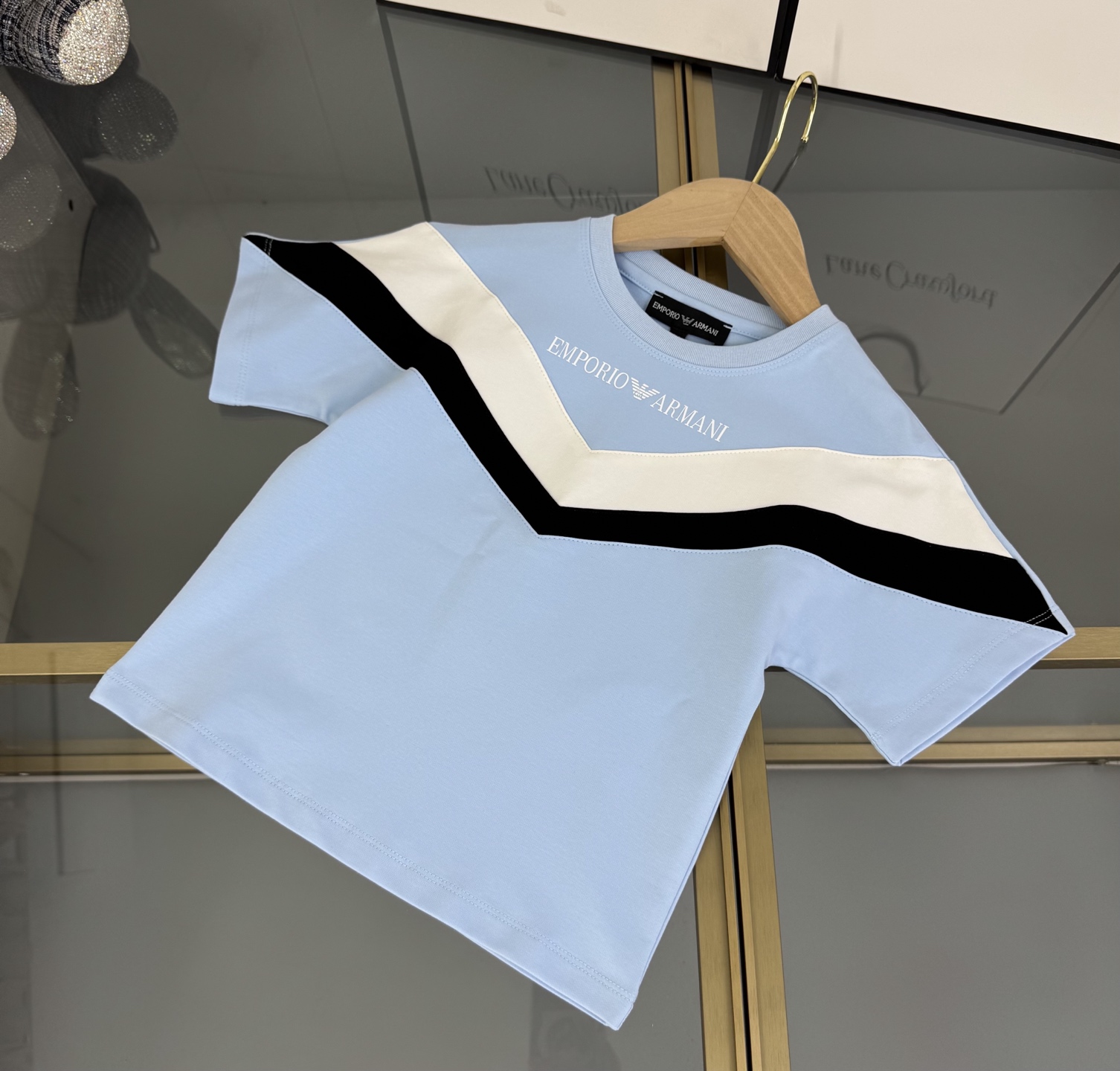 Details: Armani Kids Set, Cotton Fabric, Stripe Contrast & Logo Print, Comfortable & Stylish