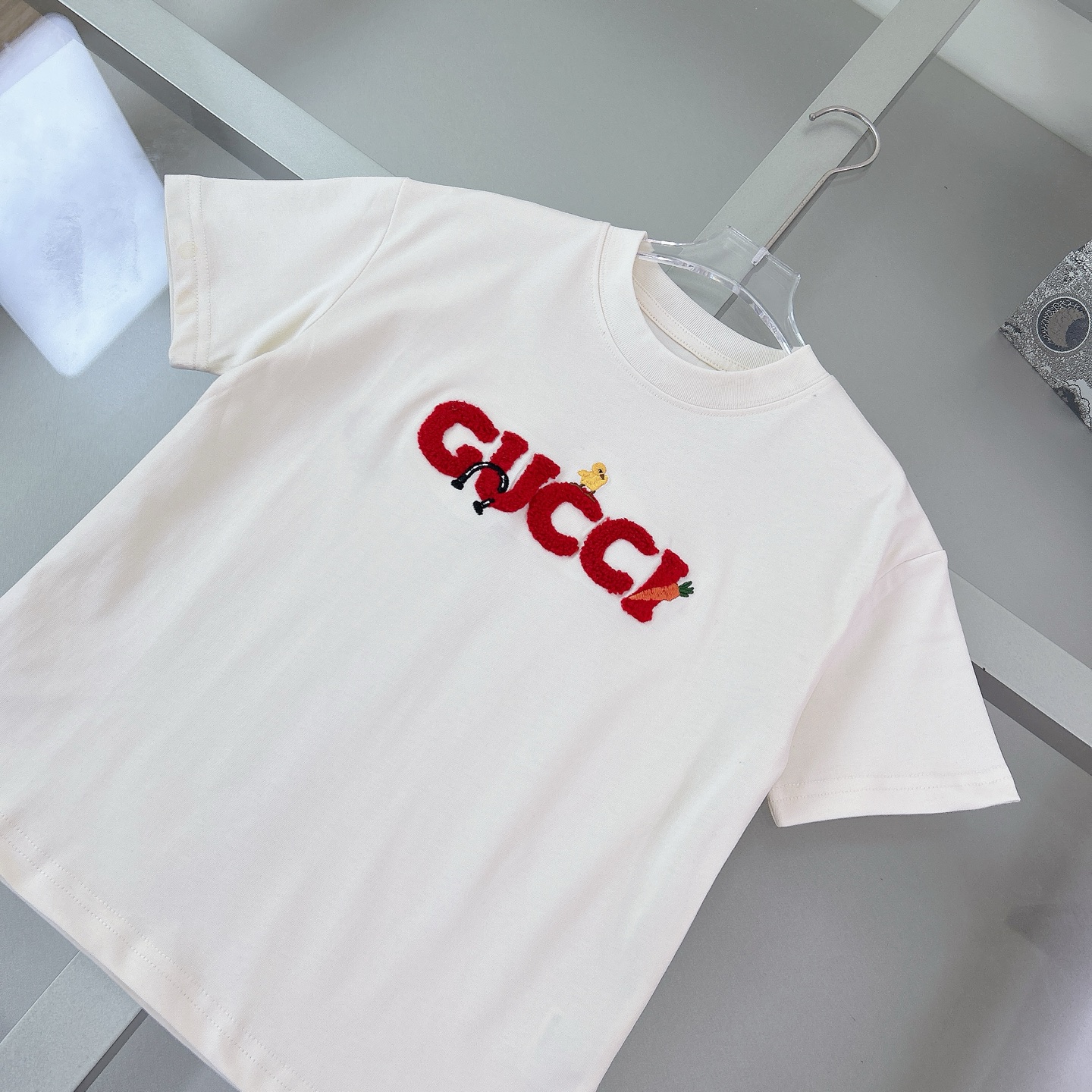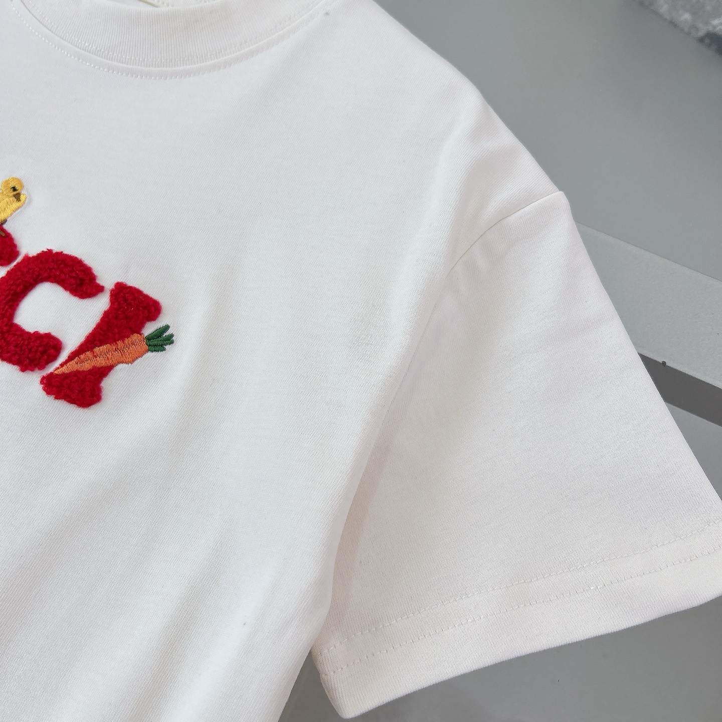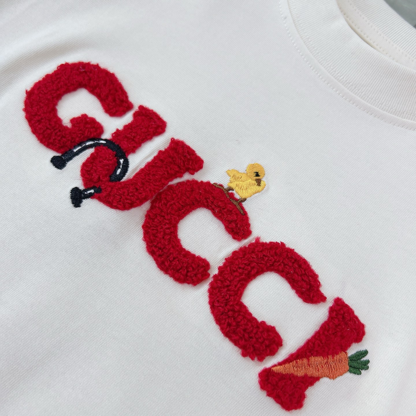Details: Gucci high-end kids cotton T-shirt with embroidery, flocking and printing, comfy and stylish