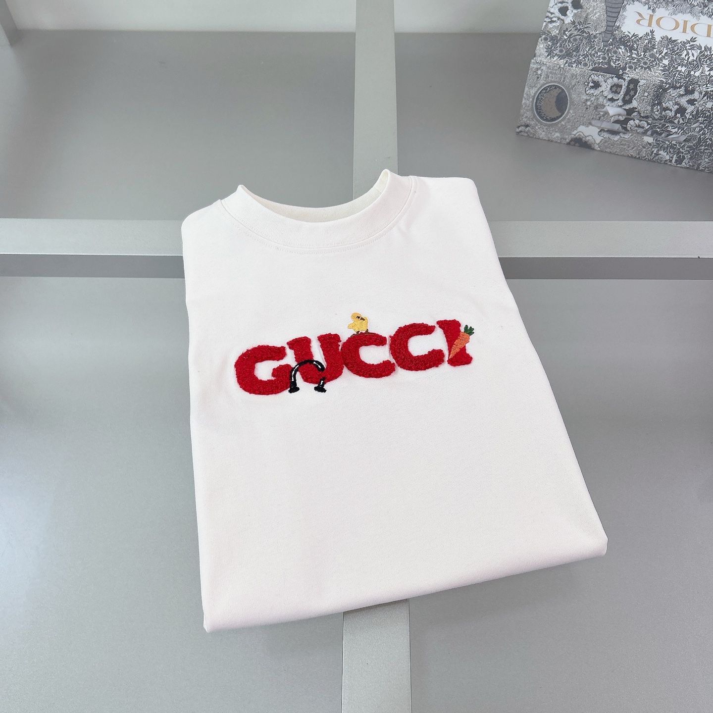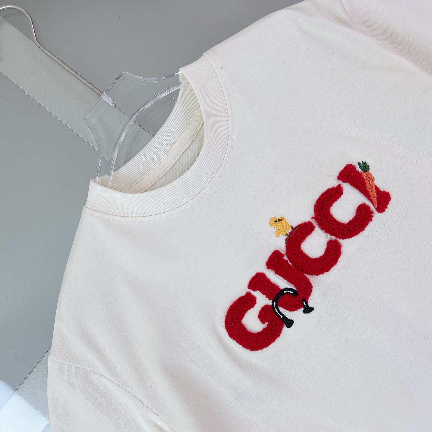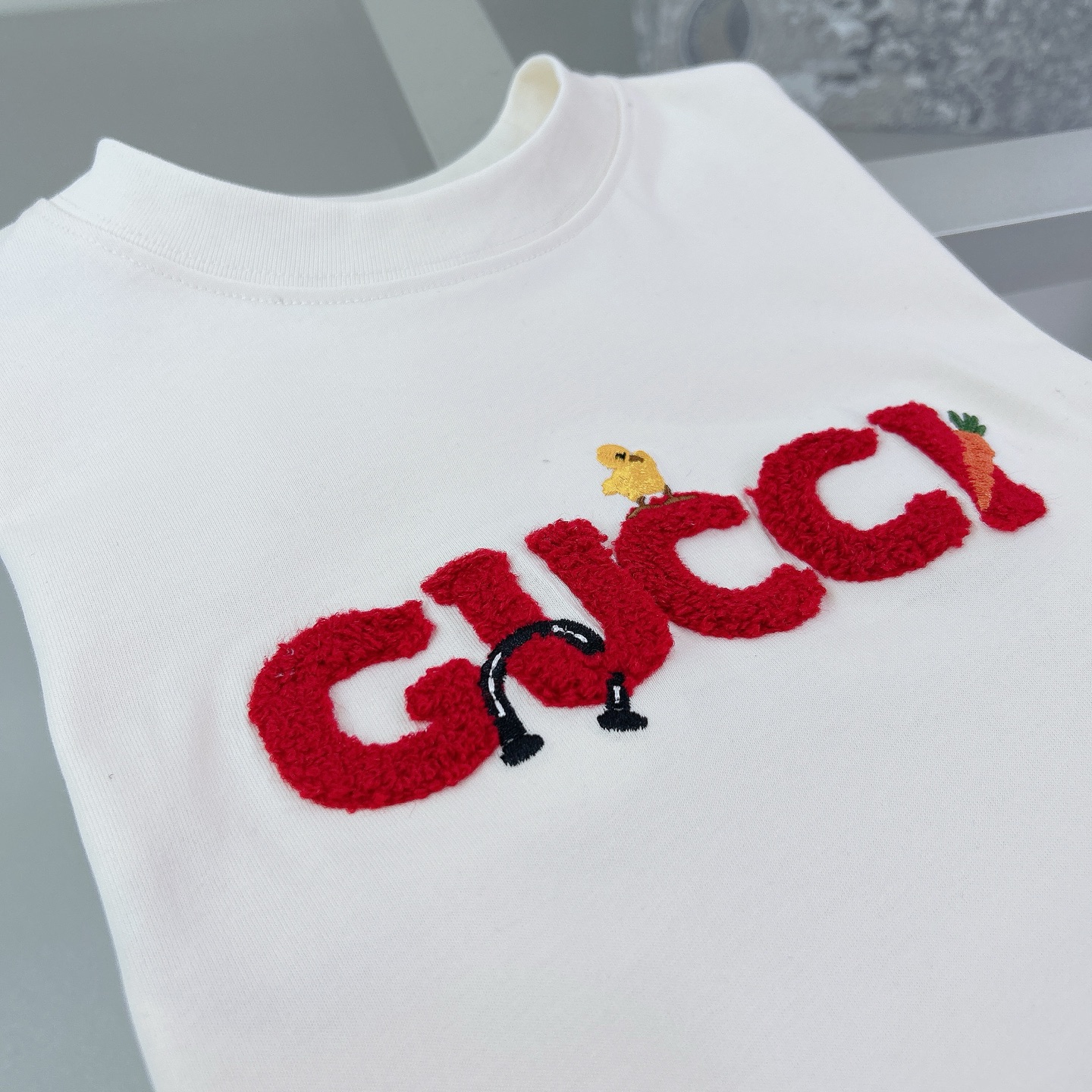 Details: Gucci high-end kids cotton T-shirt with embroidery, flocking and printing, comfy and stylish