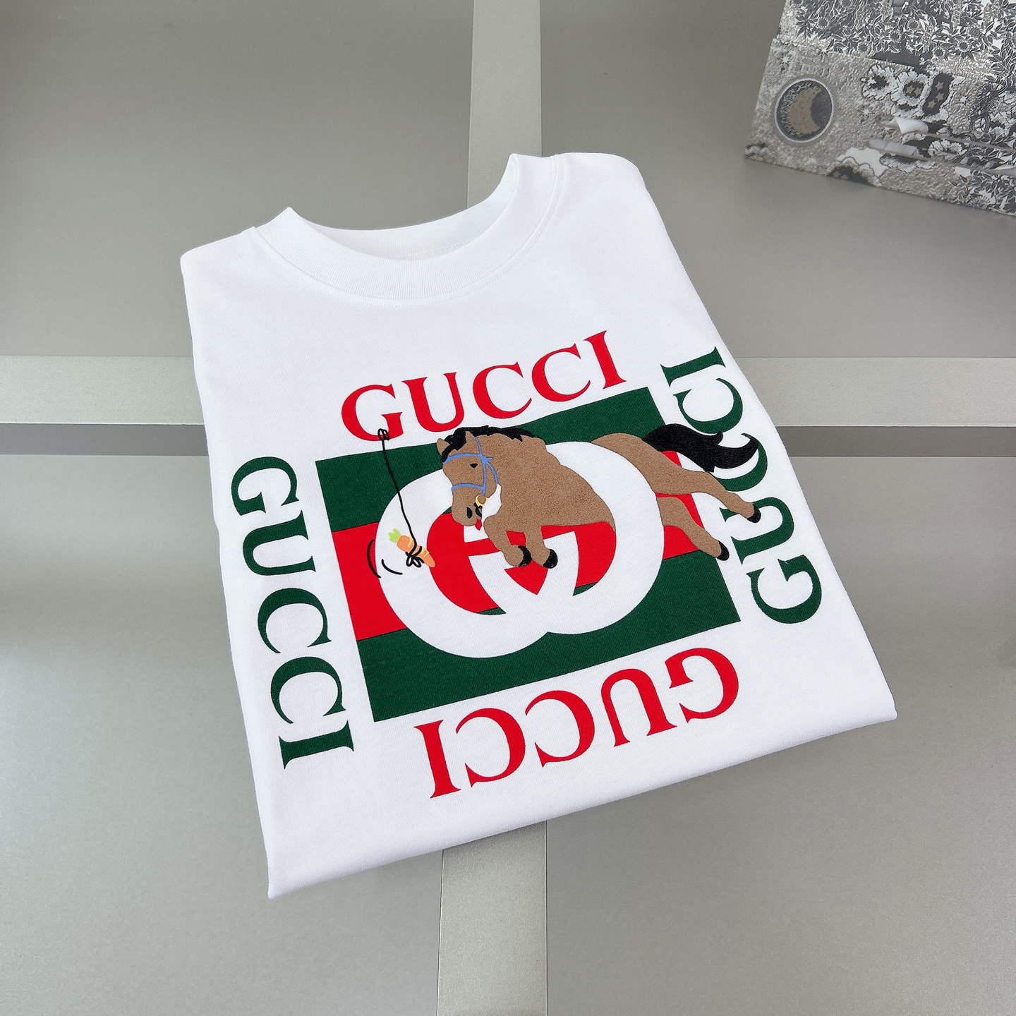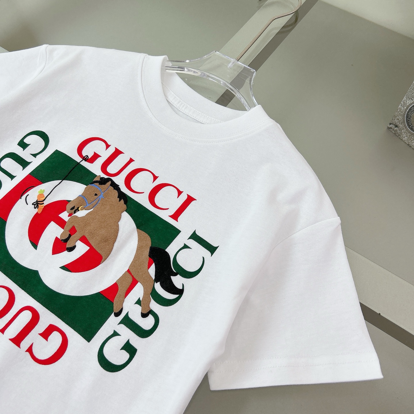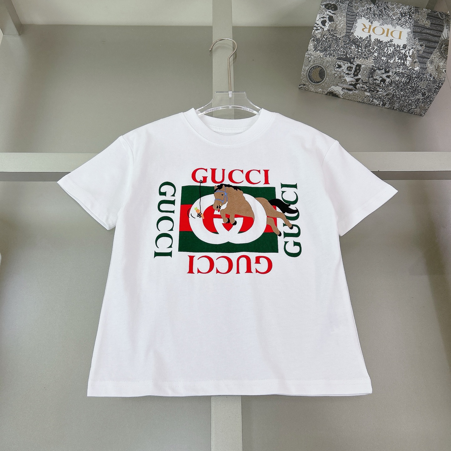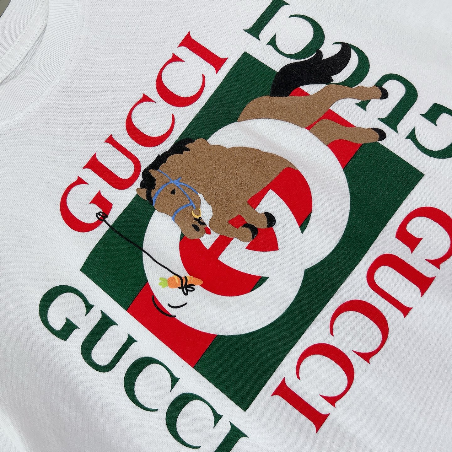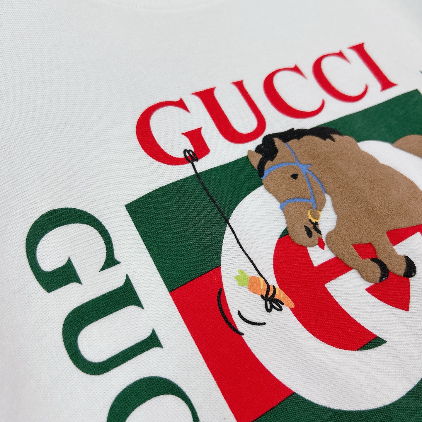 Details: Gucci high-end kids cotton T-shirt with embroidery, flocking and printing, comfy and stylish