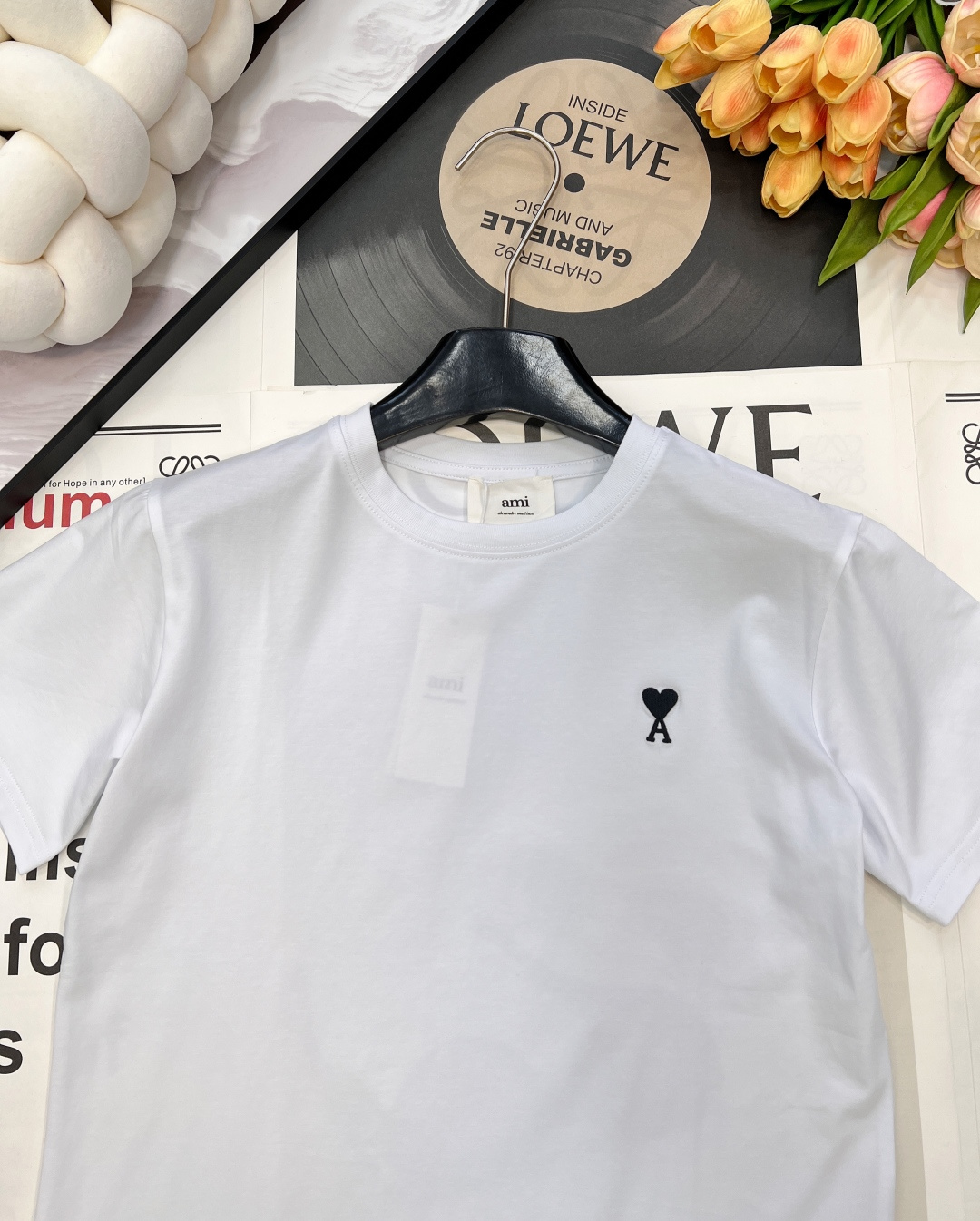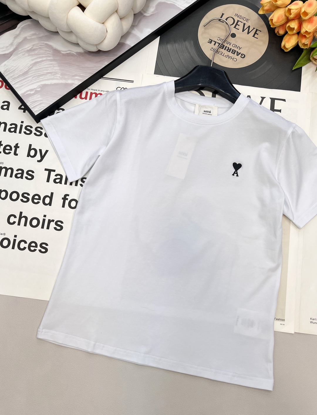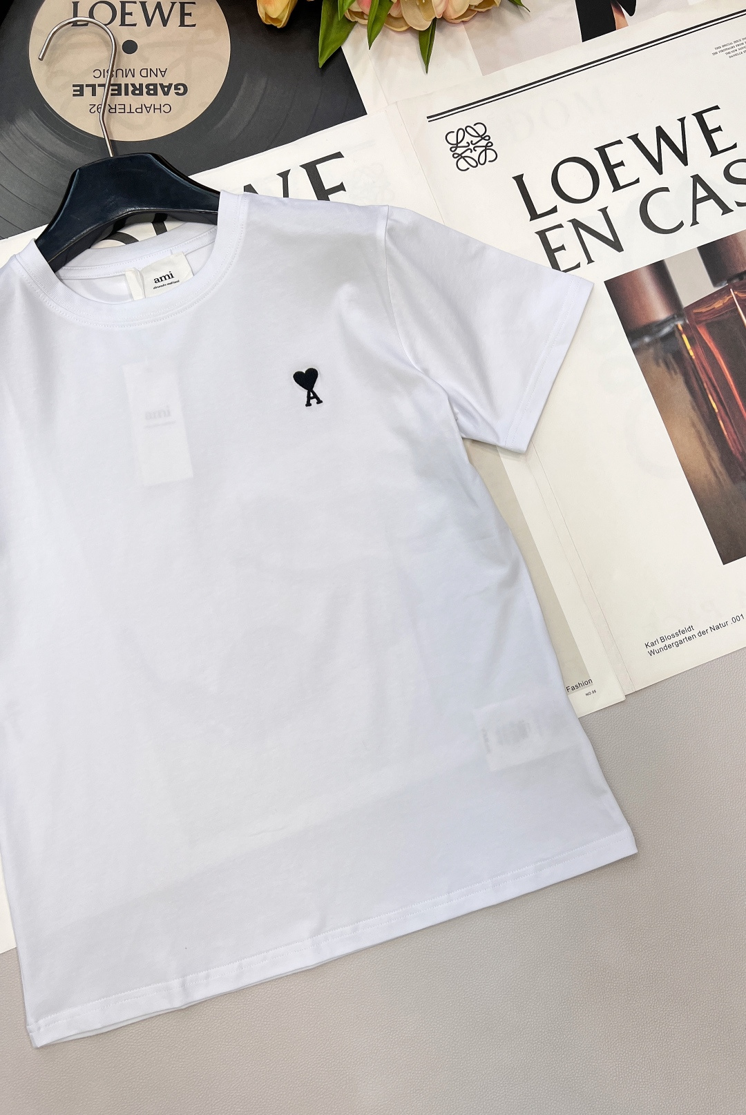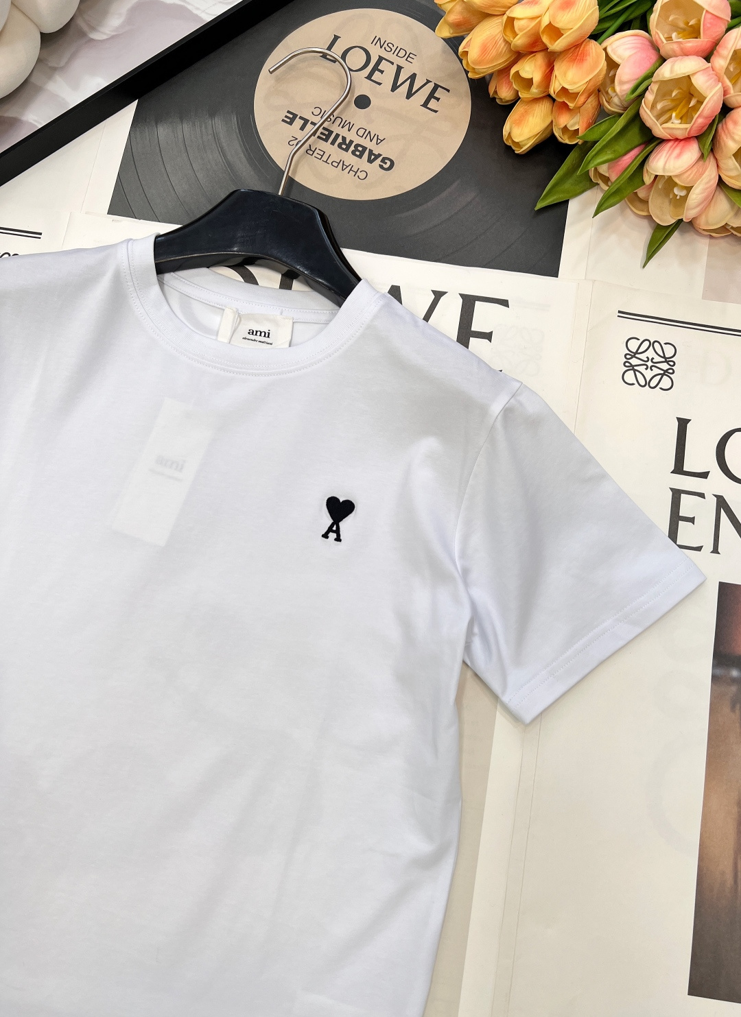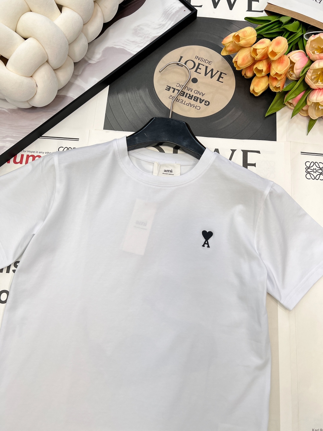 Details: Minimalist and versatile short-sleeved T-shirt with heart embroidery, made of custom mercerized cotton, available in 4 colors. fine craftsmanship