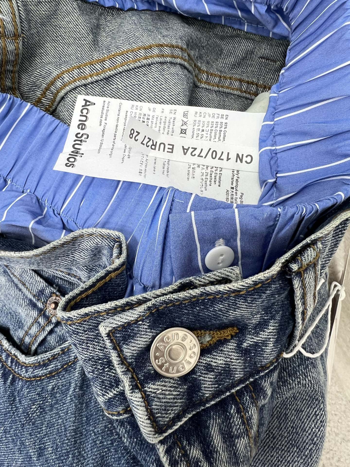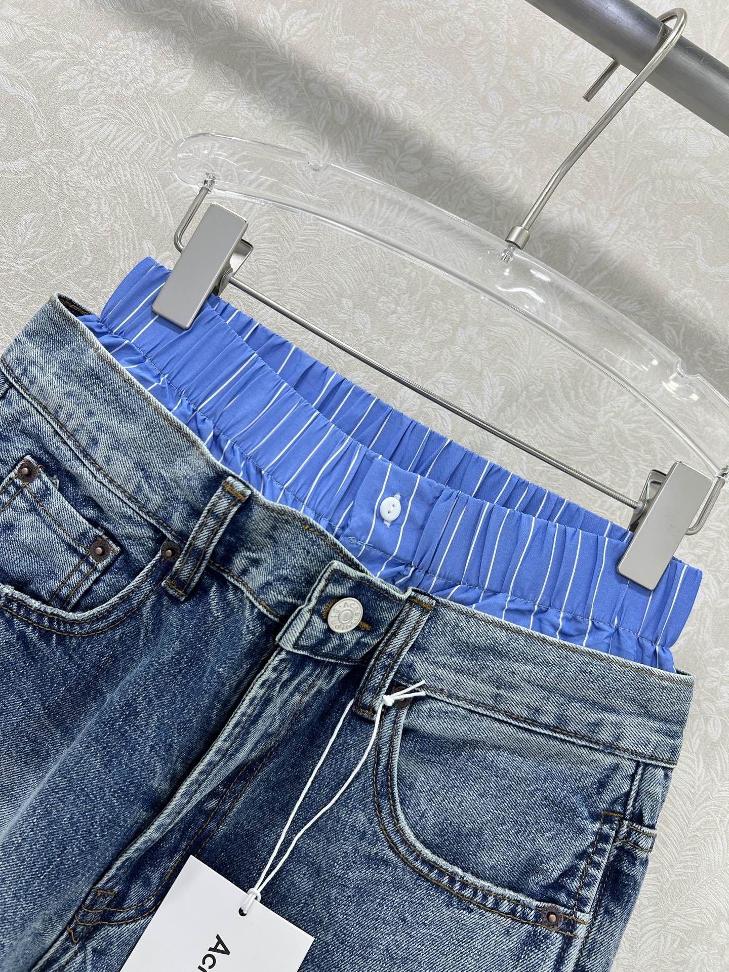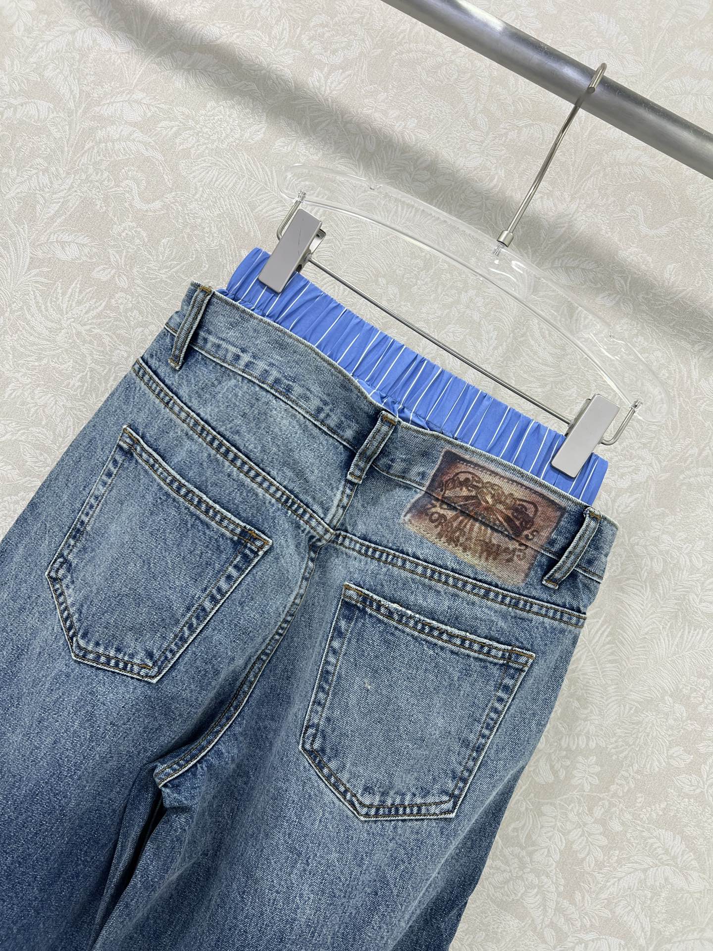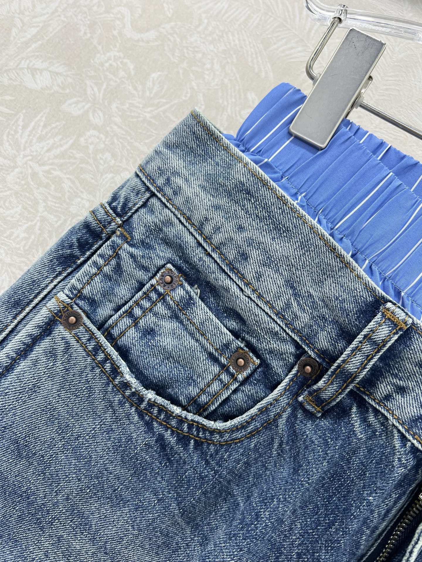 Details: Trendy wide-leg jeans with a dual-waistband design, made from custom denim, suitable for both men and women, in two colors.