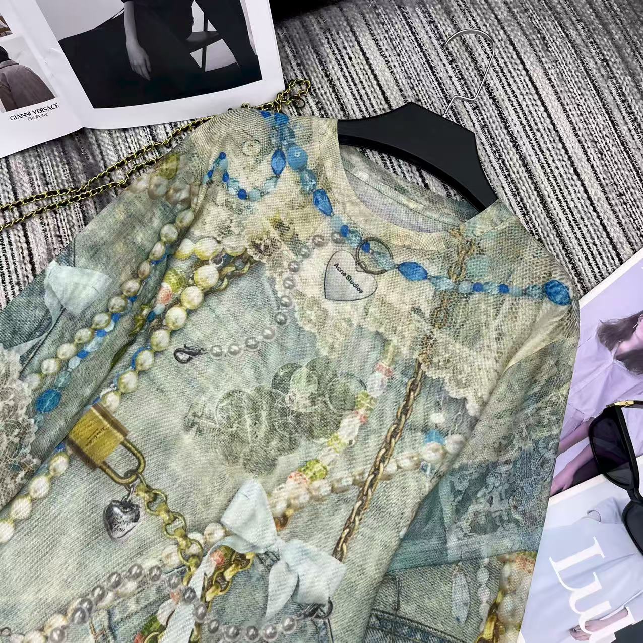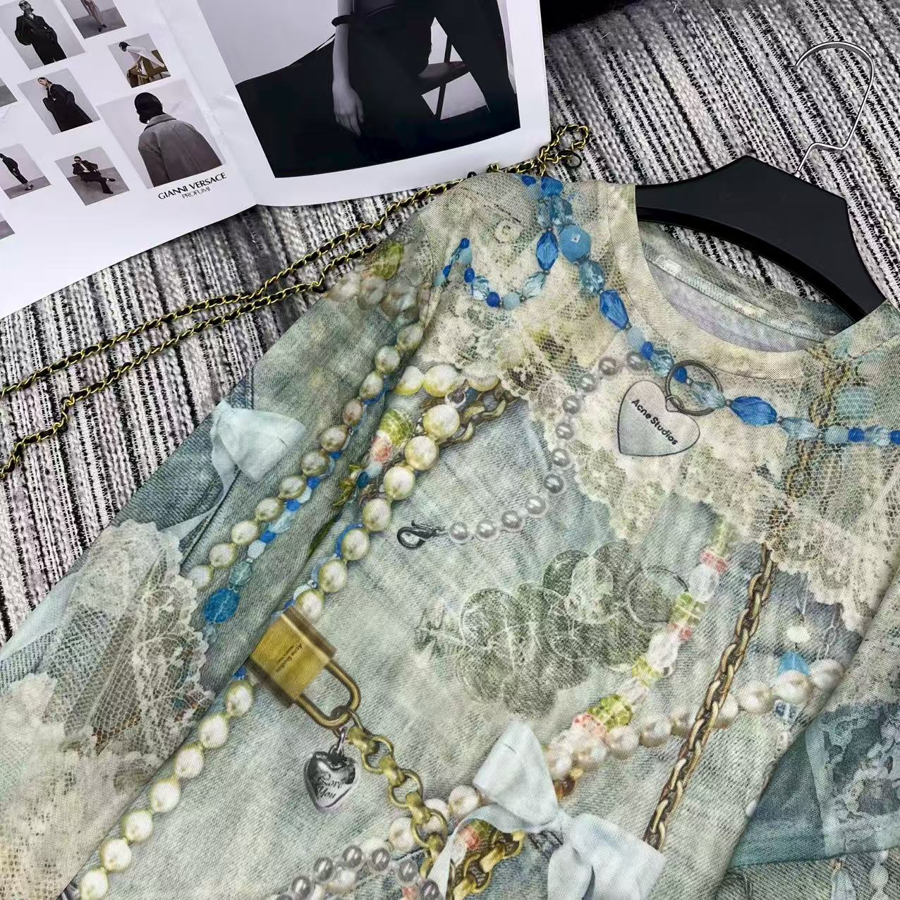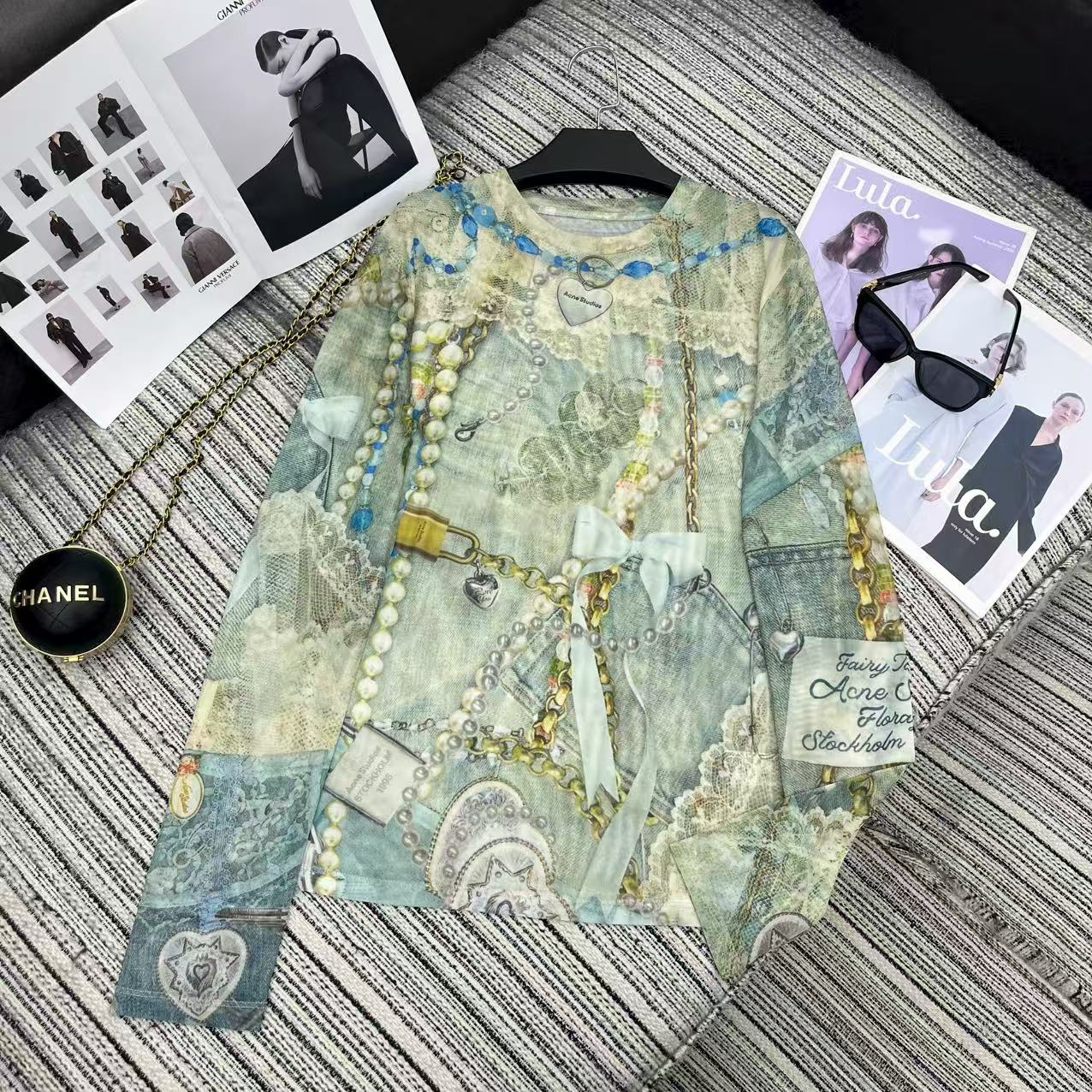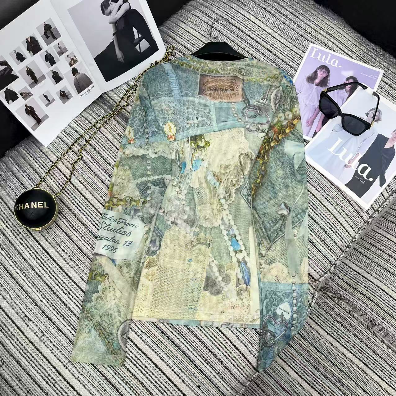 Details: Highly recommended: Early Autumn collection, new printed long-sleeved mesh top, Customized, Fine crafted
