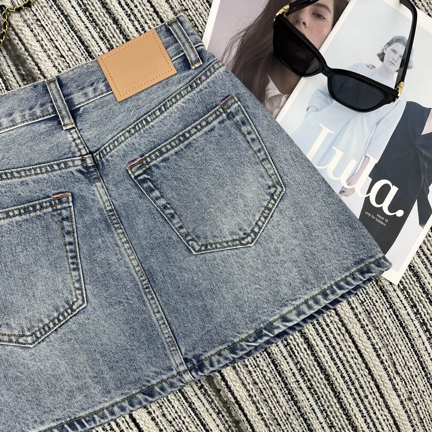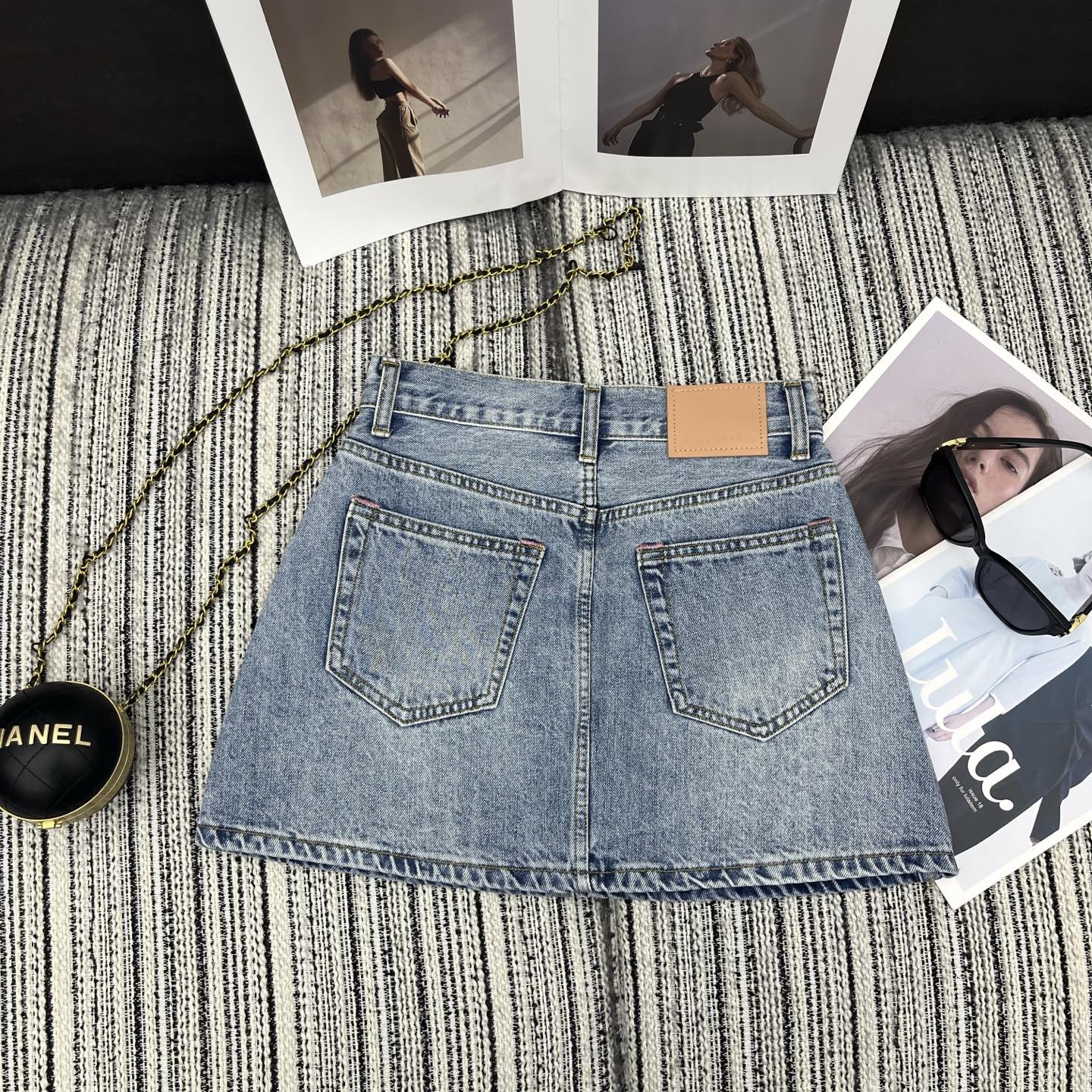 Details: Early spring denim mini A-line skirt with an attractive wash, high-end customization, and exquisite craftsmanship, offering 1:1 original quality.