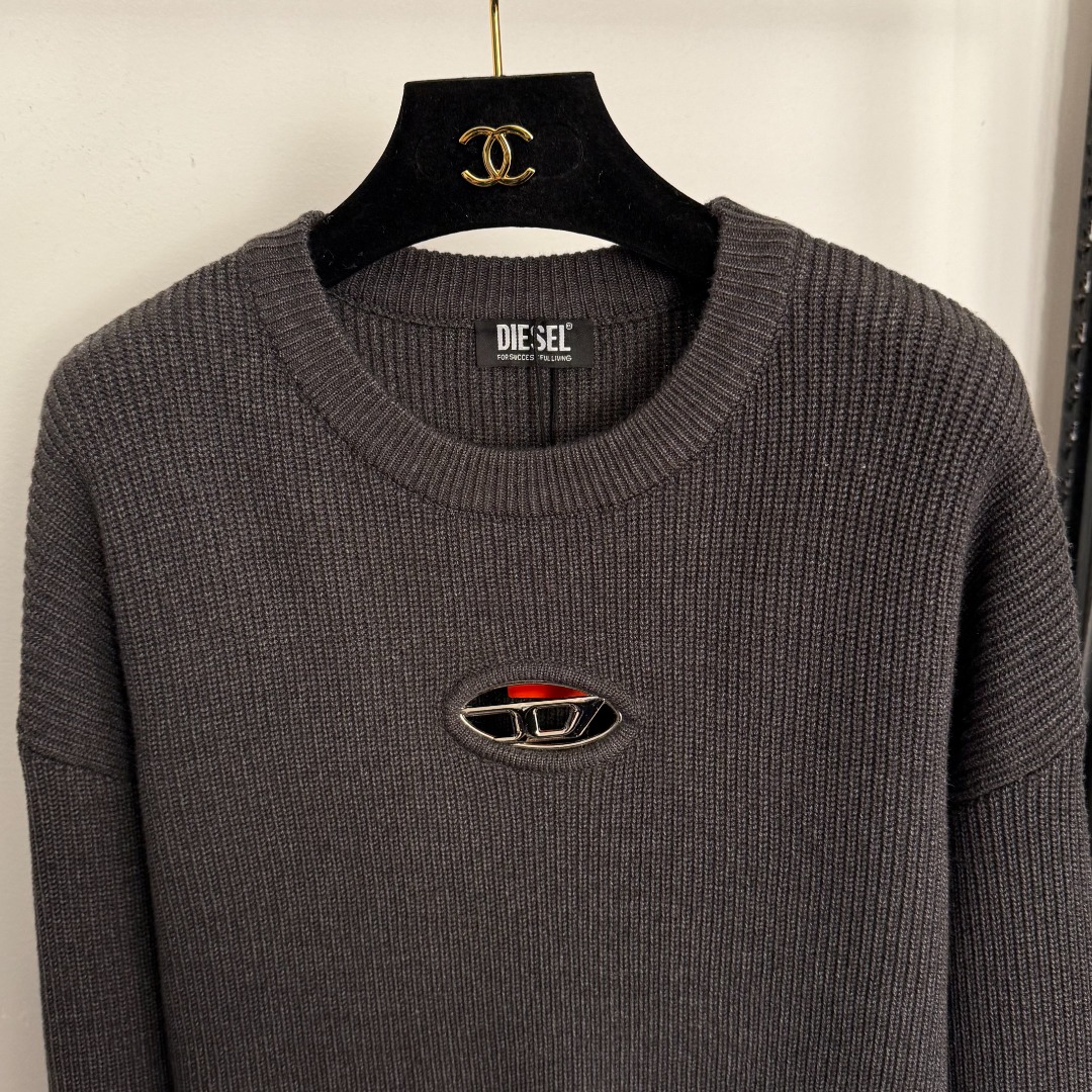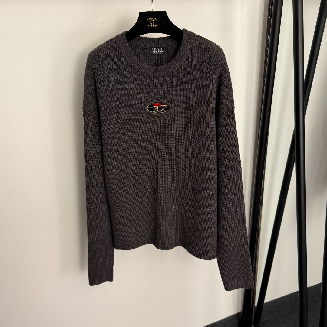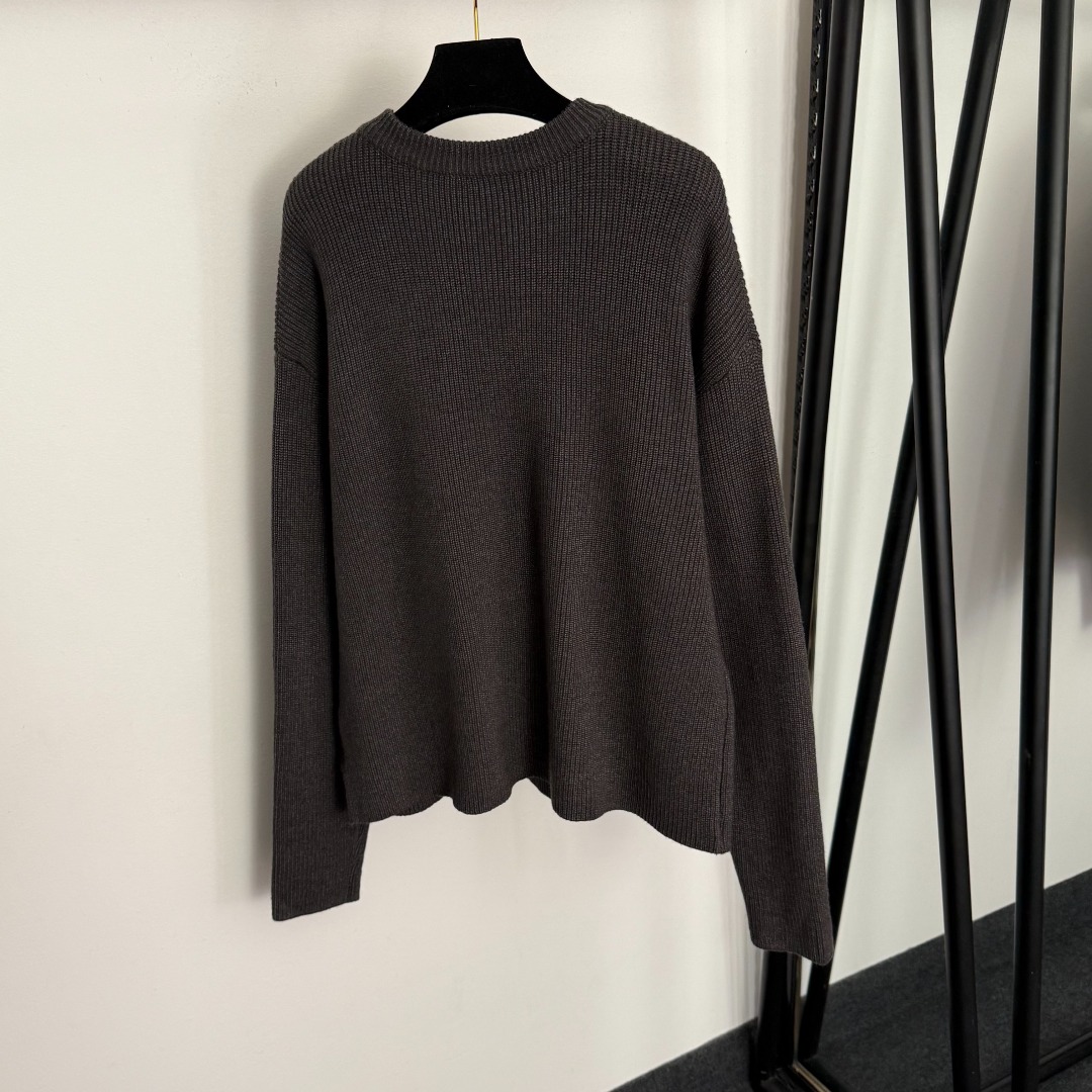 Details: New style front-hollowed logo pullover long-sleeve wool knitted shirt, dark grey, one-size, high-end customization, fine workmanship