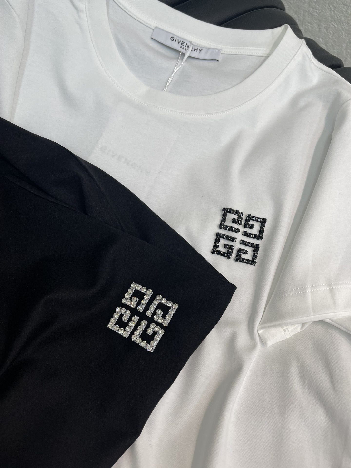 Details: Summer s new exquisite diamond-embellished short sleeve tee. High-density, stylish, and perfect for daily wear. High-quality craftsmanship.